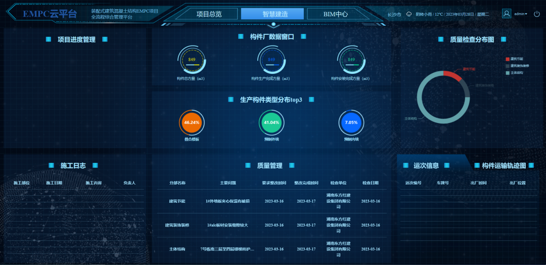 二、強化EPC前端精細化設計和智慧化管理的應用。項目全專業(yè)采用BIM正向設計,并在施工全過程應用BIM技術指導實施和糾偏,將關鍵節(jié)點施工工藝通過可視化形式交底,精準指導施工。同時,還全程應用了湖南省裝配式建筑全產業(yè)鏈智能建造平臺、智慧工地管理系統(tǒng)、智慧物料管理系統(tǒng)、智慧安全帽等信息化軟硬件,推動項目管理從線下走向線上,實現(xiàn)項目全過程信息化管理。