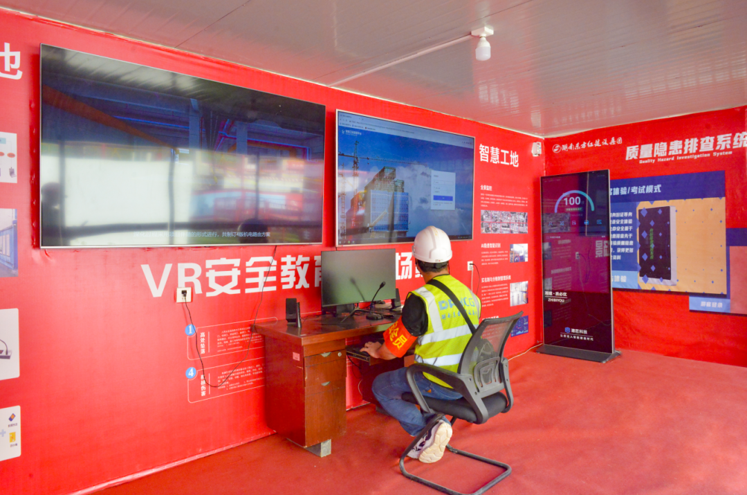 四、嚴格安全標準化管理實踐,全面提升安全生產全過程管理。項目嚴格執(zhí)行公司安全生產標準化圖集工作要求,創(chuàng)建“高標準、高效率、高起點”的安全文明施工現(xiàn)場,現(xiàn)場材料嚴格按總平面分類、分區(qū)規(guī)范布置整齊、標識清晰,全面推廣工具化、標準化設施,項目部通過班前教育講臺、宣傳欄、VR安全體驗館等多種形式開展安全教育,切實提高施工人員的安全責任意識。項目還設置了移動樣板區(qū),通過將標準化施工流程應用到實體交付工程中,做到施工有參照,交付有標準。